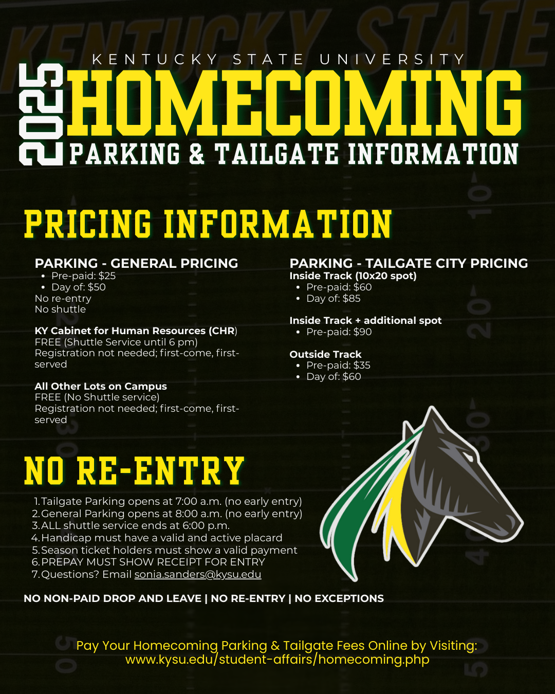 Get ready to celebrate tradition, pride, and unity at Kentucky State University Homecoming! Check out the exciting events lined up below and make plans to join the festivities.